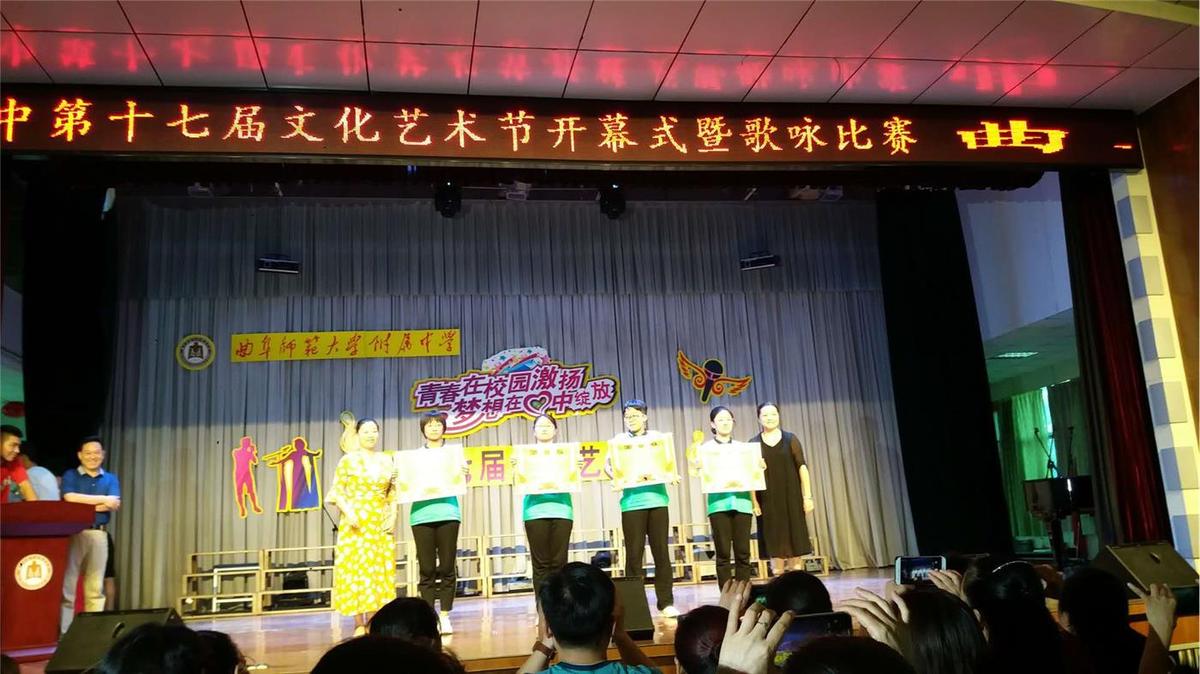 歌咏比赛用时近两个小时。经过评委打分,最终高一·1班、高一·2班、高一·9班、高一·5班获得一等奖;高一·4班、高一·7班、高一·10班、高一·3班获得二等奖;高一·11班、高一·6班、高一·12班、高一·8班获得三等奖。