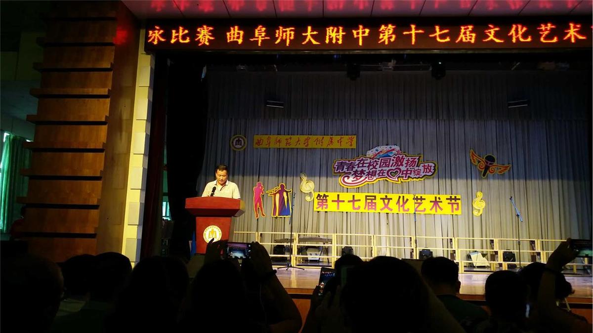 在开幕式上,孟祥东副校长致开幕词。他表示,一所学校要想成为名校,就必须拥有属于自己的校园特色文化。文化艺术节是我校传统的学生系列活动,是深化校园文化建设、推进素质教育向纵深方向发展、营造浓郁人文精神氛围、提高学生综合素质的重要平台。学校各年级要以文化艺术节为依托,推动校园文化建设,促进班级文化建设,从而形成良好的学风和校风。