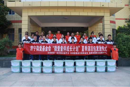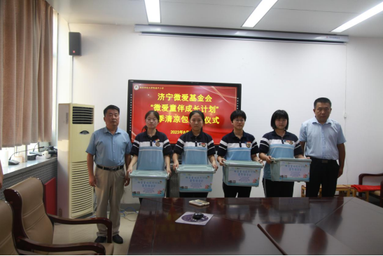 8月22日下午,曲阜市彩虹公益服务中心联合济宁微爱基金会“微爱同伴成长计划”夏季清凉包发放活动在我校举行。曲阜市彩虹公益服务中心理事长康绪虎、中心联合党支部书记张青山、副秘书长马莹,曲阜师范大学附属中小学纪委书记、副校长谢印智,高一级部副主任闫斌,高二级部副主任马德才和受捐助学生参加了本次仪式。本次仪式由党政办公室主任张玉广主持。