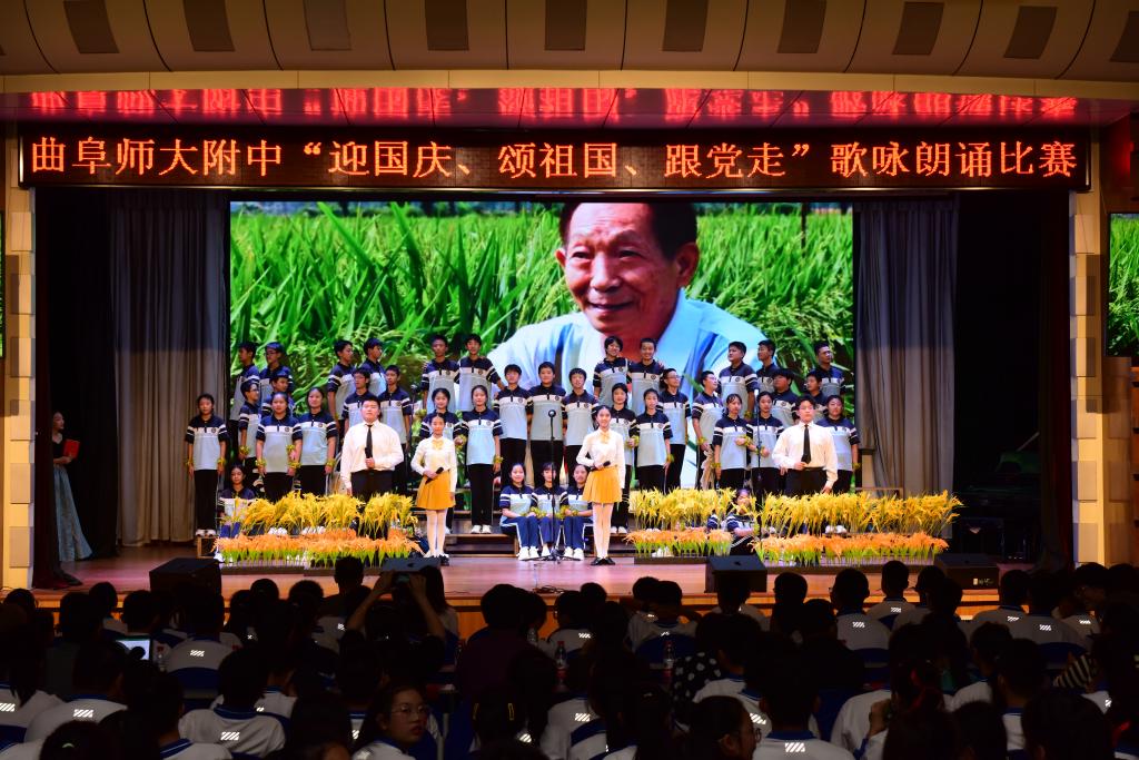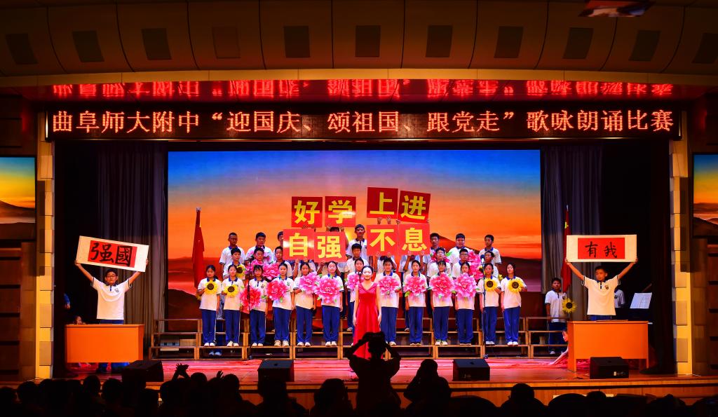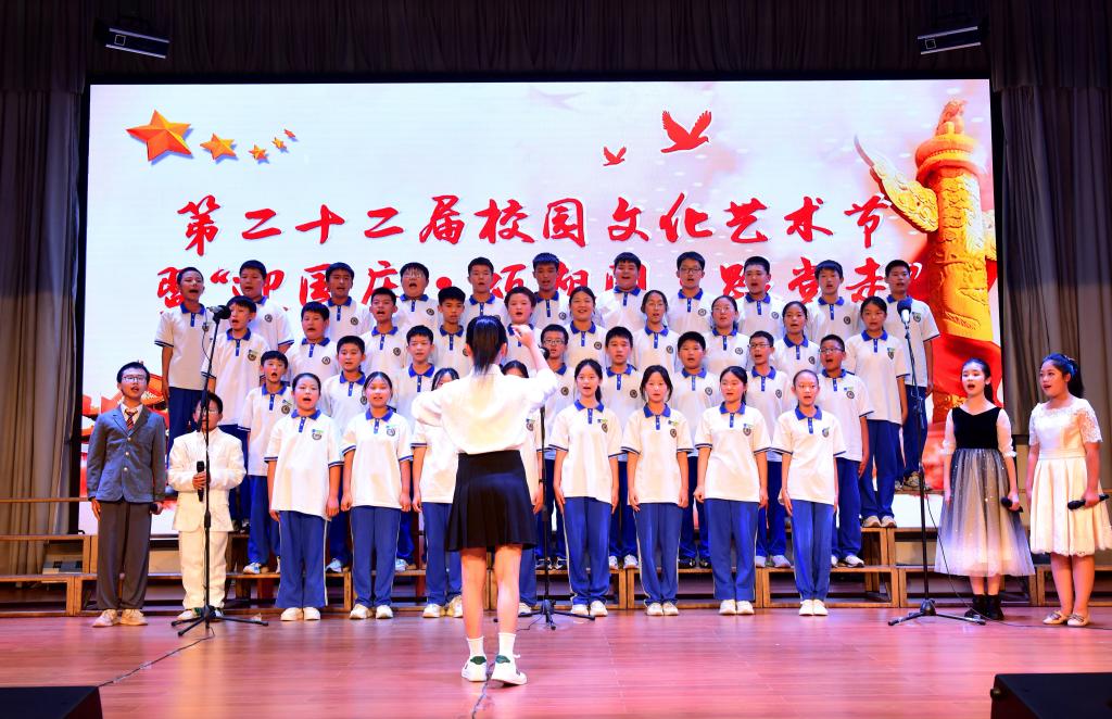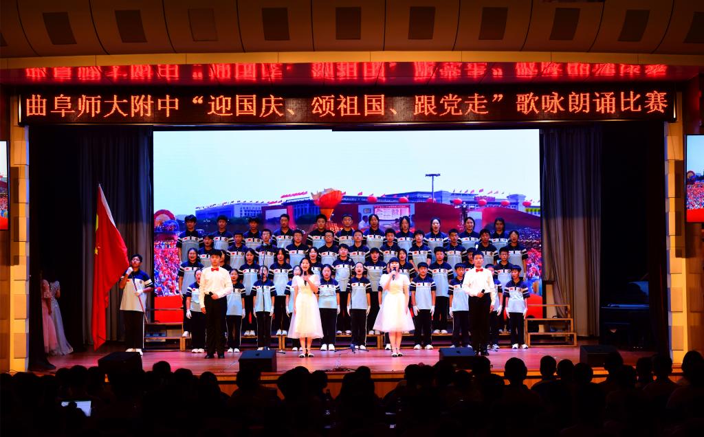 为庆祝新中国成立74周年,9月28日,我校初中部举行第二十二届校园文化艺术节开幕式暨“迎国庆颂祖国跟党走”歌咏朗诵比赛。学校领导,教师和家长代表,初一、初二全体学生参加了本次活动。