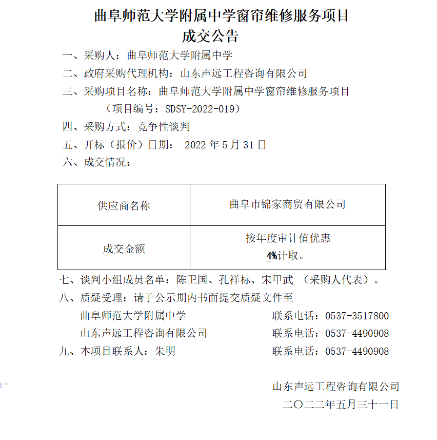 上一条:曲阜师范大学附属中学空调维修服务项目成交公告 下一条:2022年公开招聘工作人员报名材料补充通知