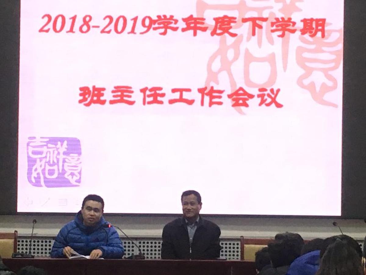 日下午,我校在阶梯教室召开全体班主任会议,主要内容是部署本学期学生管理和学生德育工作、团委工作和宿舍管理等工作。孟祥东副校长、政教处主任刘洪涛老师、副主任于世新、曹务青老师,各级部分管学生工作的副主任刘珊珊、辛香梅、王赛、李杰等老师以及