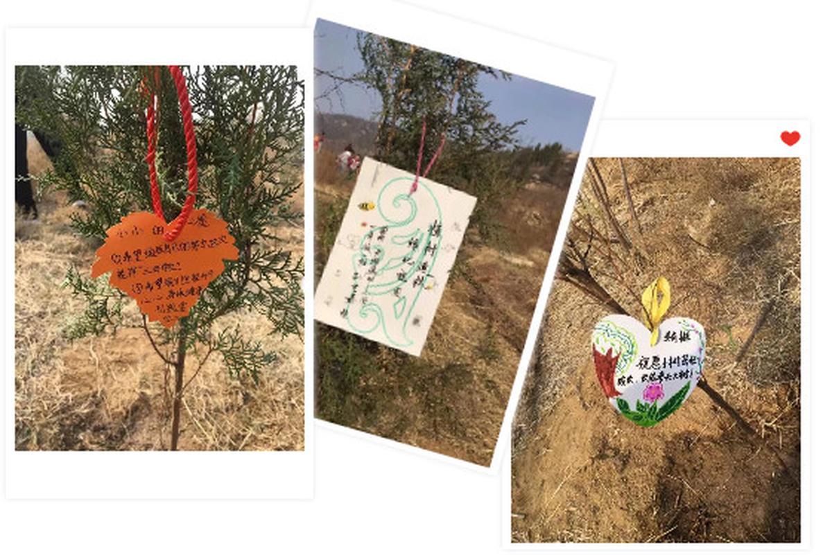 随后,同学们为小树苗悬挂了植树心愿卡。小小的卡片,童真的文字,传递着绿色梦想,在山间,在和煦的春风里摇曳,显得格外生动。
