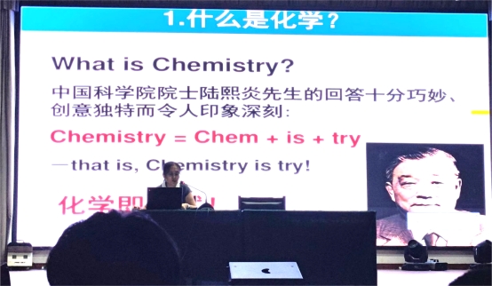 高一级部化学备课组长邹燕指出高中化学更倾向于理性的理解,学习中要侧重思维、观察、实验等能力的培养。她就化学的新兴领域和未来职业方向作了介绍,帮助学生深入了解这一学科。