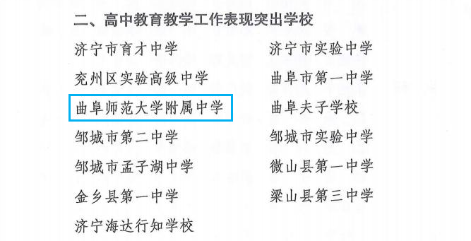 近日,济宁市教育局表彰了我校高中教育教学在2023-2024学年取得的突出成绩。