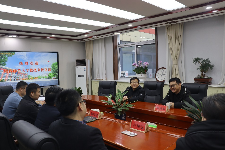 12月18日下午,陕西师范大学李晓辉、程勇军教授团队来我校交流。党委委员、纪委书记、副校长谢印智,高三级部主任卢翔远、副主任刘文衡,高二级部主任郭庆海和物理组教师代表参加了本次活动。